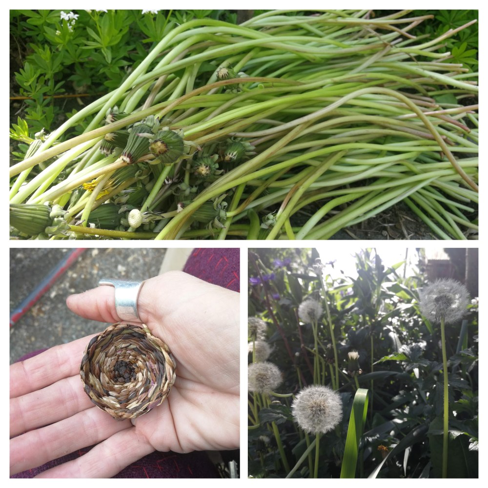 Did you know, you can be gathering dandelion stems from long grasses after seeds are produced, spent daffodil stalks and false or dead nettle stalks? All of these plants are in high number now, and chances are you find them in places people won’t mind you harvesting- ask neighbours about their daffodils! Just cut stems as long as possible and hang to dry until they wither, then they will be ready for soft basketry weaving projects with a quick soak and wrap in a wet towel.