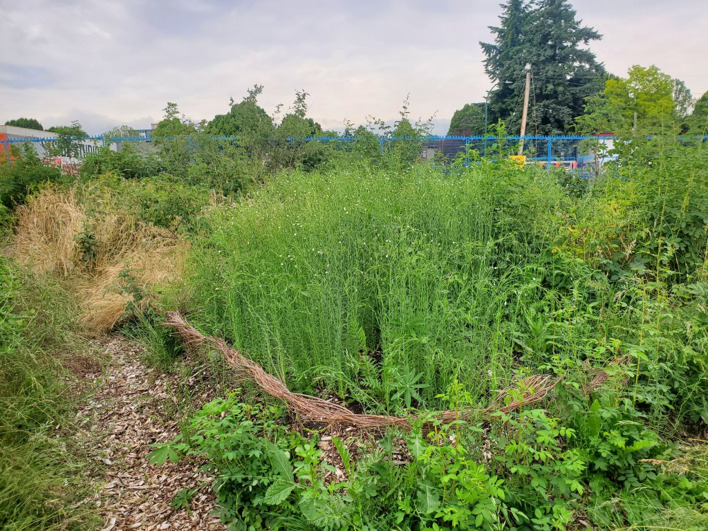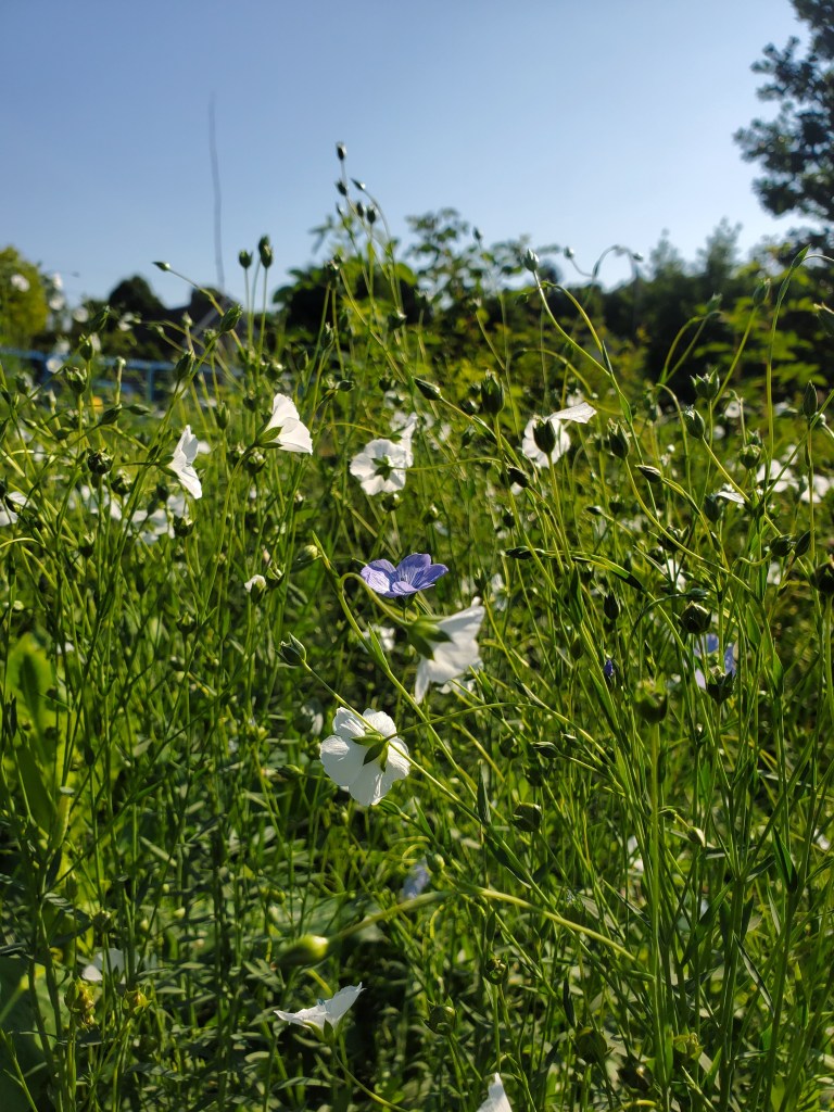 Meanwhile, the little demonstration crops we have tucked in our environmental learning gardens at both Trillium and MOP appear to be great examples of just how much we can get away with when it comes to ‘benign neglect’, showing how little work is required to grow flax for linen! ( note- the hard work happens after harvest)