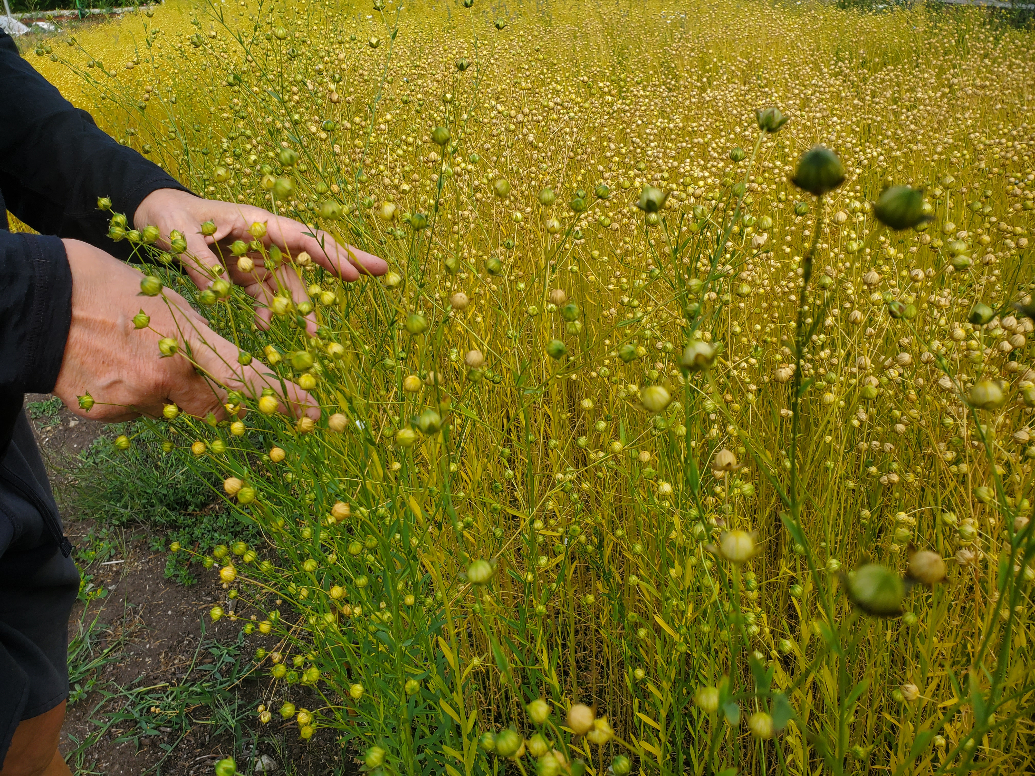Some of the research we are doing this year includes cutting some of the linen instead of hand-pulling to see what might be possible for linen flax as a no till crop in future plantings.