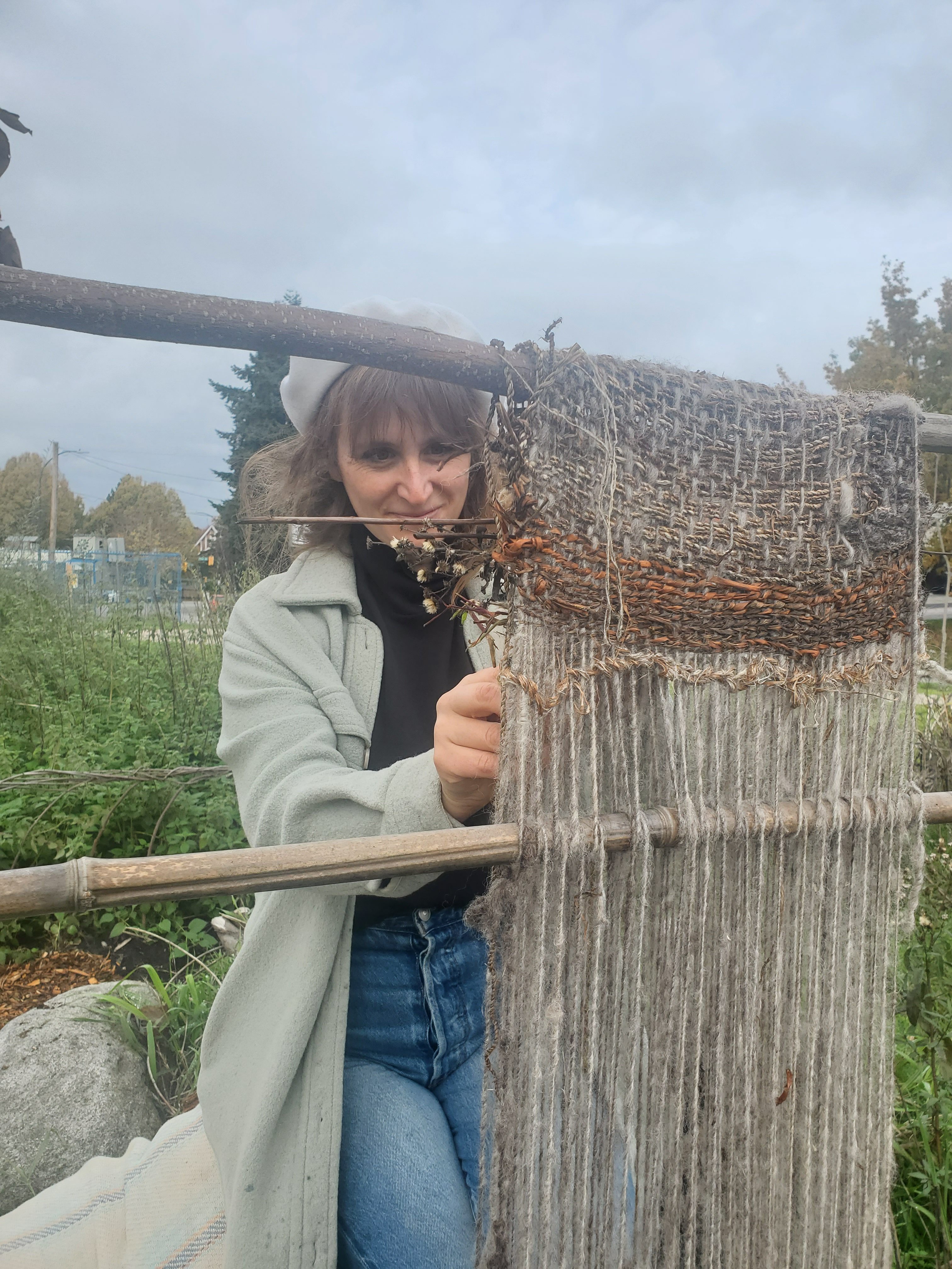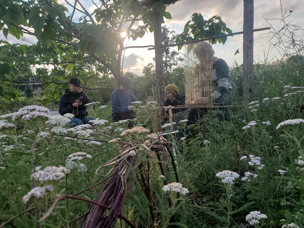 With support from the BC Arts Council, local indigenous skill holders Cease Wyss, Chrystal Sparrow, Rosemary Georgeson, Leah Munier, Cheryl Arnouse and Lilly Teare Cunningham, gathered with EartHand board members Nicole Preissl, Tiffany Muñoz, Lex Battle and lead artist Sharon Kallis for 3 sessions of harvesting fireweed for fibre. Spending time in good conversation, while busy hands gathered fibres from plants grown in the Trillium gardens.