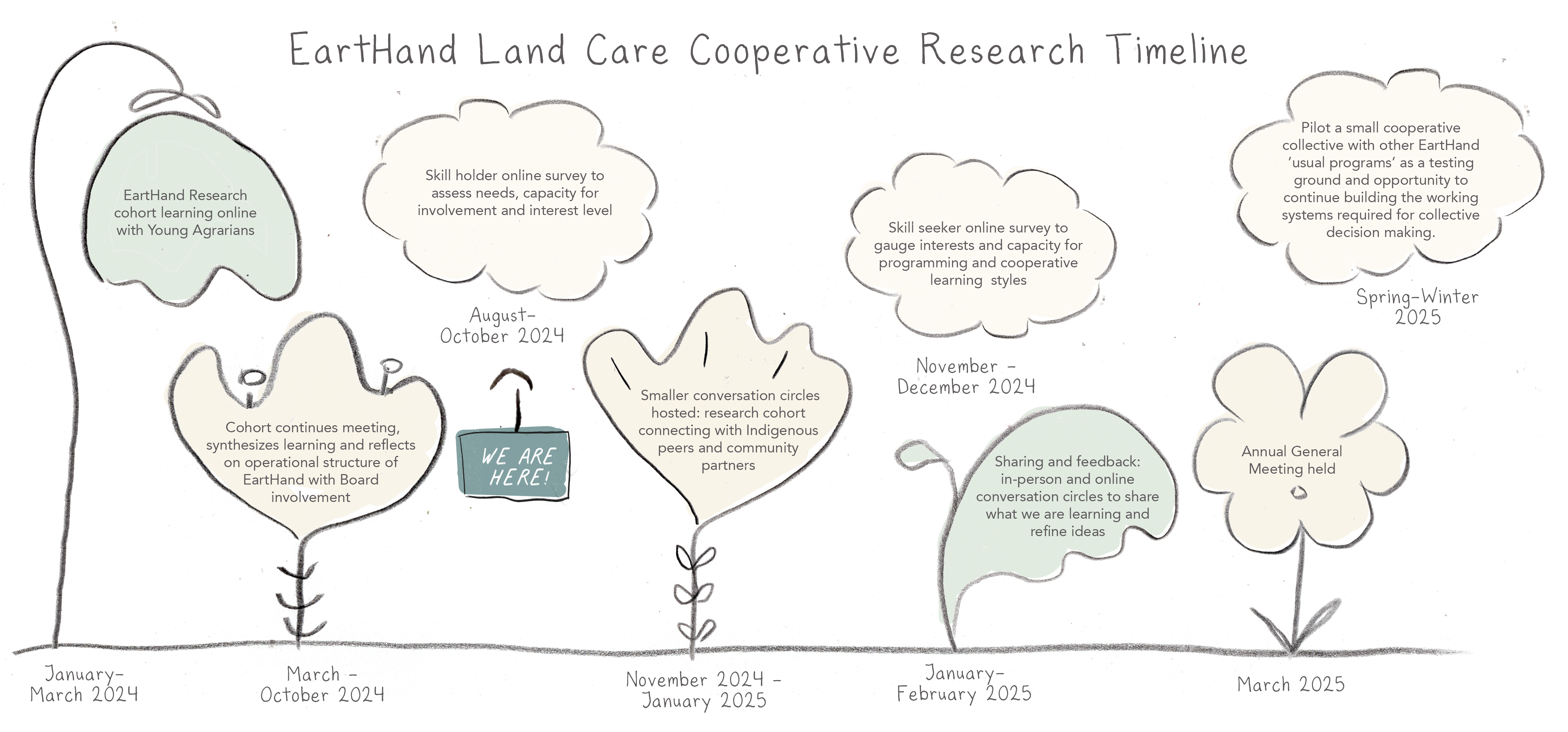 The Collective Land-Care research cohort (CLC) coalesced the learnings, sharing it with our board of directors, (it helps that 4 of the researchers joined the board) -and collectively the board and CLC cohort has begun drawing up a seasonal wheel to better understand the interconnected work rhythms of EartHand.