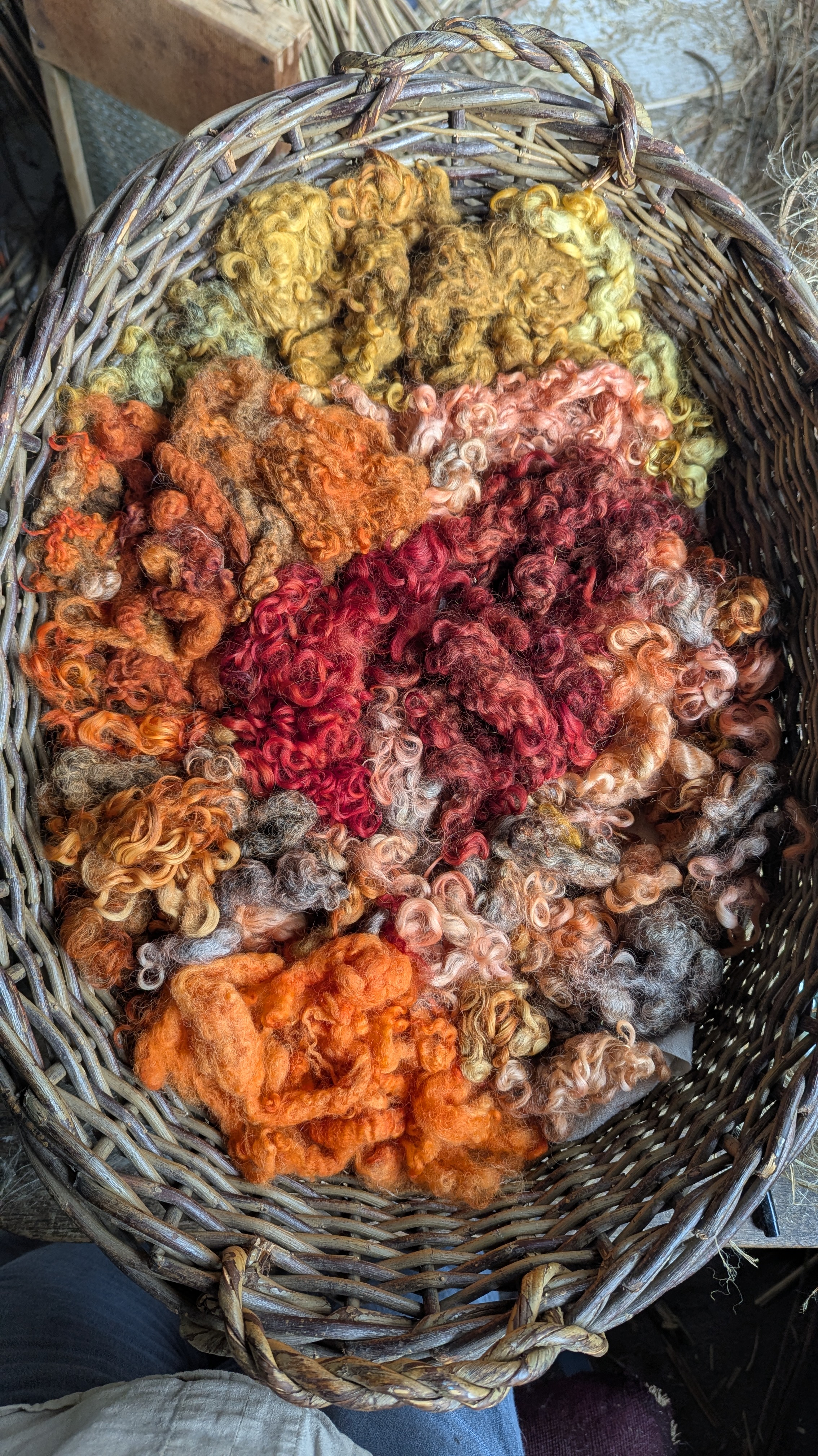 Includes the gorgeous blue/grey Gotland-cross fleeces of Magpie and Twyla, and other ‘Barnston locks’ naturally dyed in previous EartHand Gleaners programs.