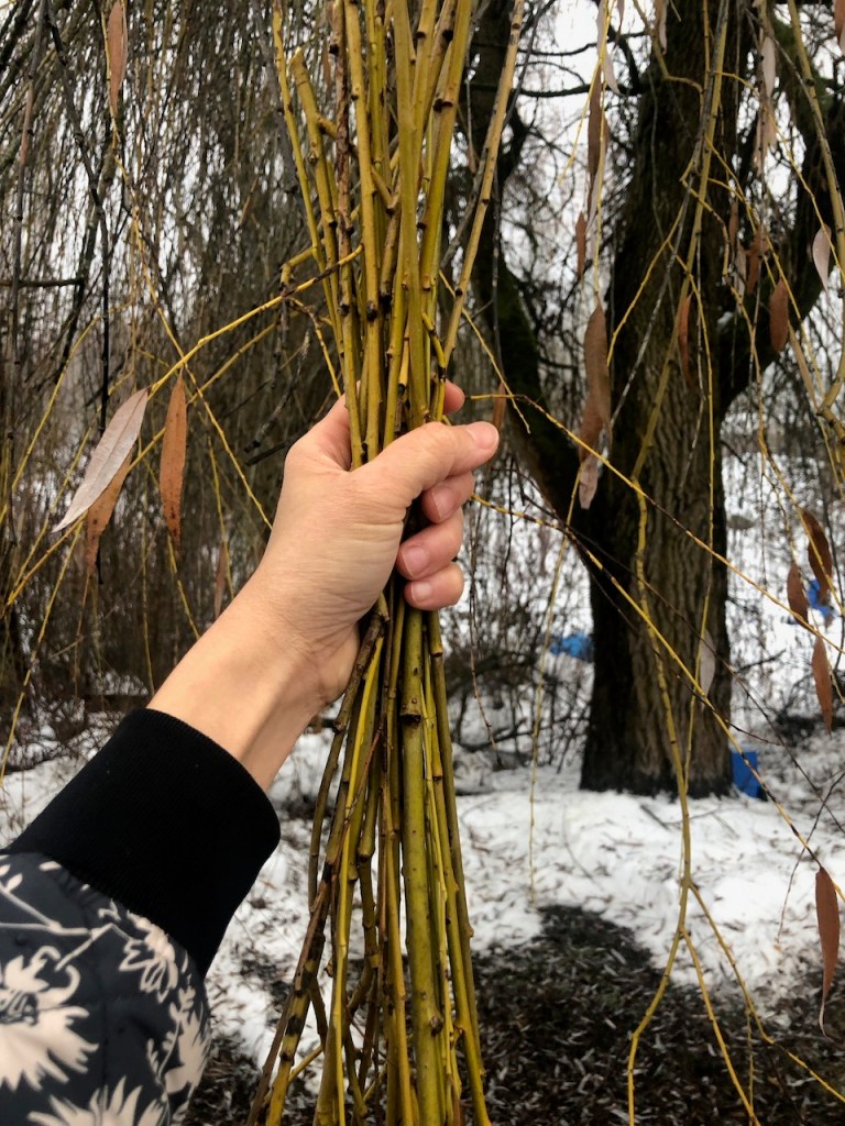 All plant materials were either grown by the makers, or respectfully gathered. Plants include: plants include alley grass blackberry vine black walnut leaves bindweed cattail cedar boughs chokecherry corn husks crocosmia leaves daylily dried flowers (allium, coreopsis, oregano, poppy seed pods, statice, strawflower, yarrow)
